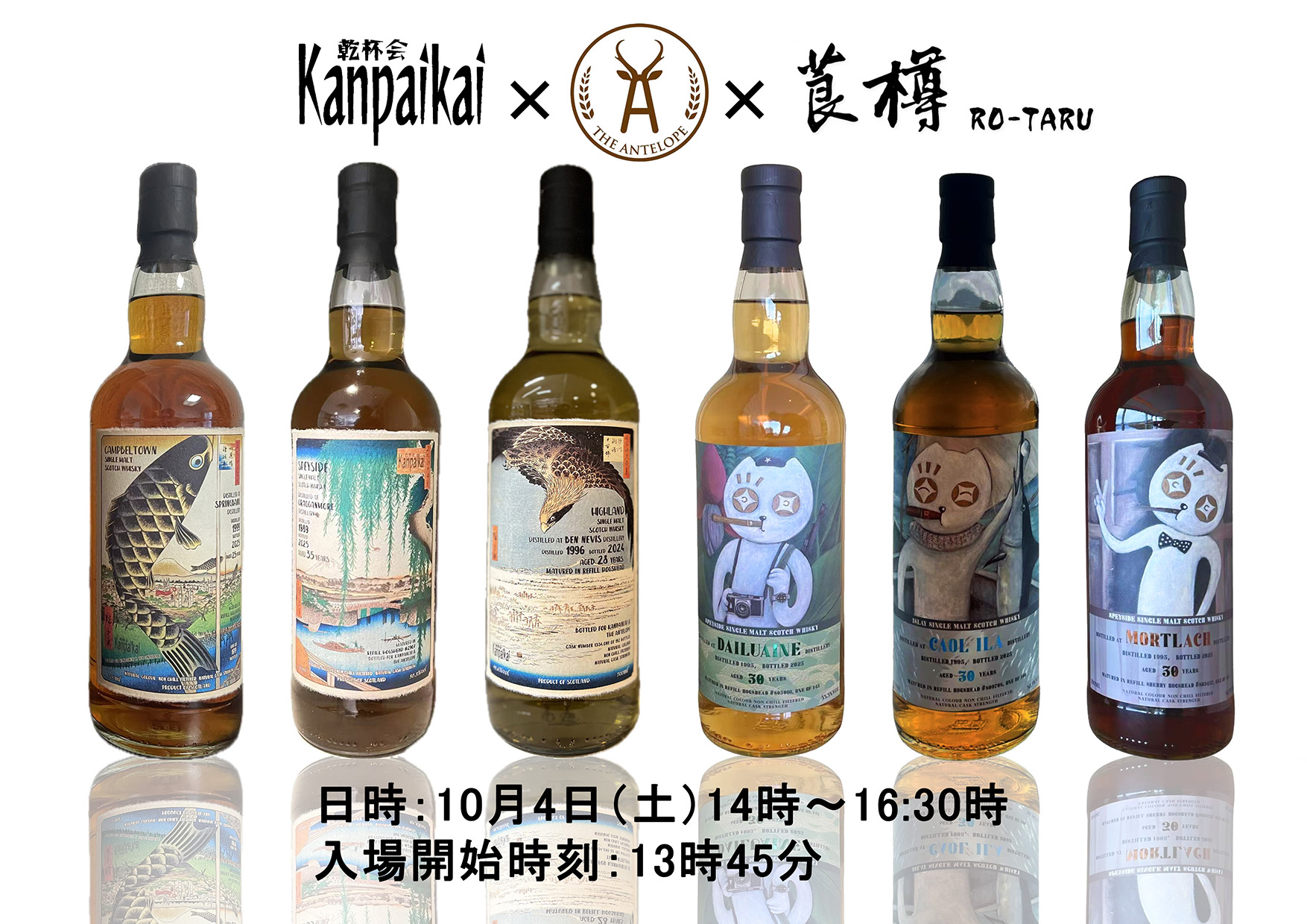 乾杯会X The Antelope スペシャルテスティング会 In 莨樽Whisky Bar The Antelopeはマカオを代表するボトラーズ兼酒類専門店として、アジア全域のウイスキーバーやウイスキー愛好家の皆様に高品質なボトルをお届けしてまいりました。2020年より「乾杯会」との共同ボトリングをスタートし、これまでに数々の人気ウイスキーをリリース、アジア各地で多くのファンに支持されています。 このたび、The Antelope代表 Ken LO 氏の来日にあわせて、乾杯会とThe Antelopeによるスペシャルテイスティング会を開催いたします。過去のボトルから最新作までを一挙に味わえる、特別な機会となります。さらに当日は、テイスティングに加え、新作ボトルの先行受注や過去リリースボトルの受注も予定しております。ぜひこの機会にご参加ください。