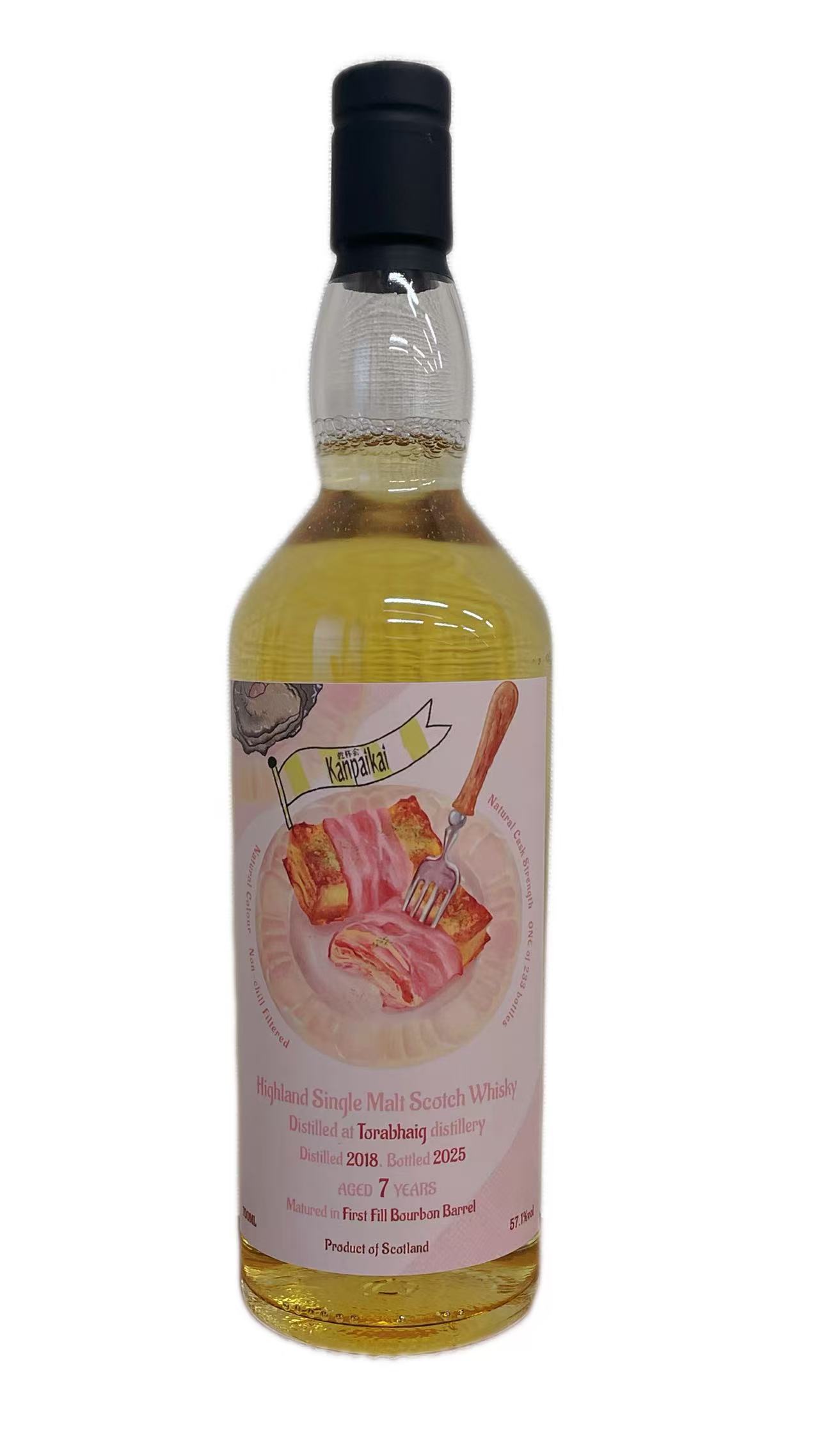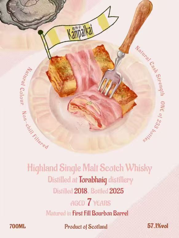味:口に含むと、スモーキーな個性がより立体的に現れ、スモークベーコンの旨味、バターを塗った焼きたてのパンを思わせるコクのあるモルティな甘みが重なり合います。ピートの煙とオイリーなテクスチャーが一体となり、若いトラベイグらしい力強さと複雑さを感じさせます。